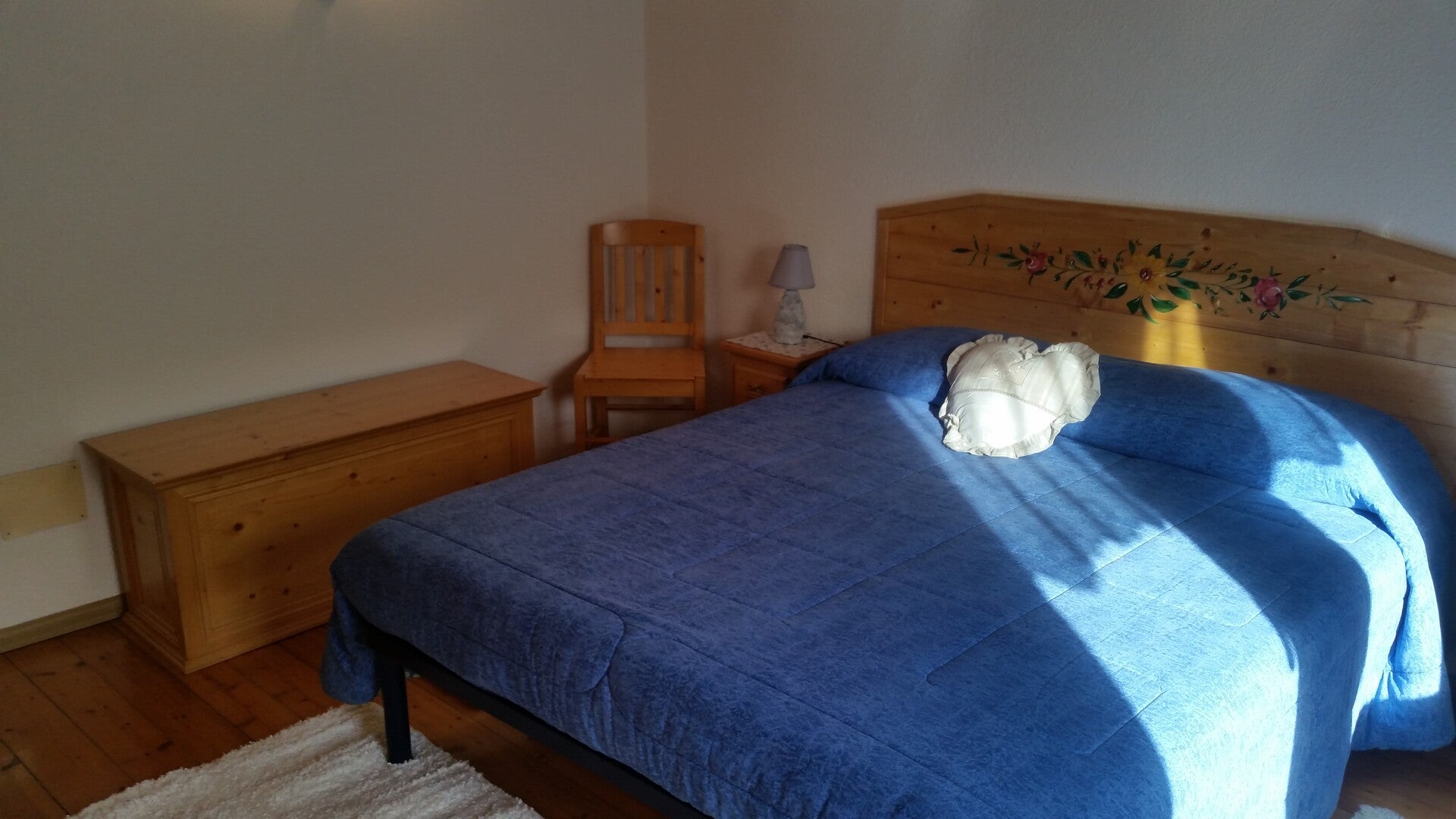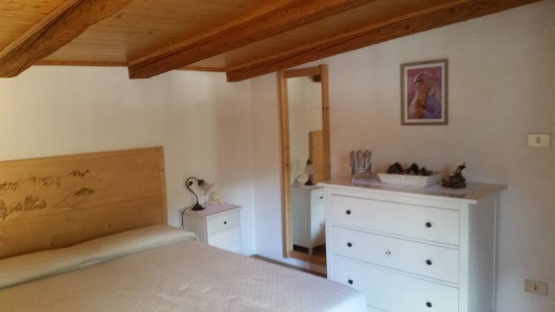 Camera matrimoniale di grandi dimensioni, interamente in legno, dal pavimento allo spazioso armadio con specchio interno